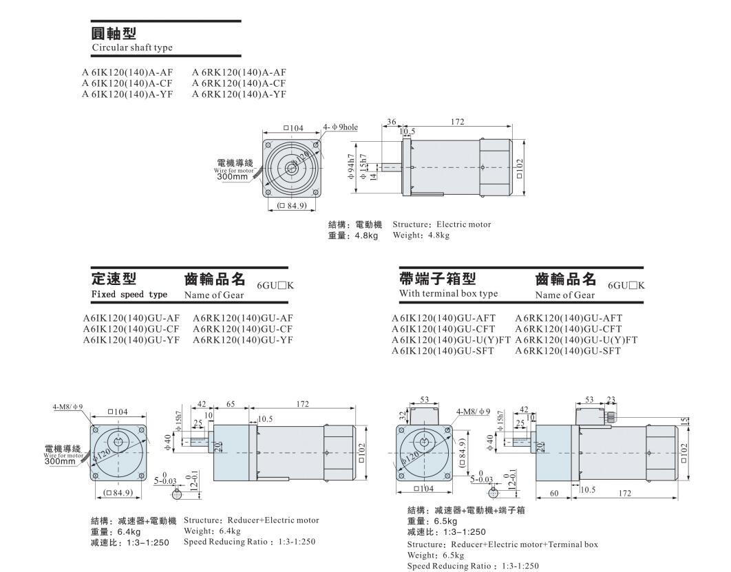 120w 140w 104*104mm 交流减速电机
